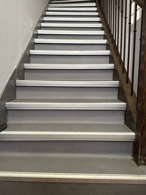 Au-delà de la performance technique, ce revêtement offre une surface antidérapante, facile à lessiver, et une esthétique homogène qui unifie visuellement l'ensemble des marches.